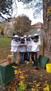 Bis dahin werden in der Imker-AG handwerkliche Tätigkeiten durchgeführt (Wachsverarbeitung, Mittelwände einlöten, Rähmen reparieren, Bau eines Insektenhotels) … und nicht zu vergessen: die notwendigen Theorieeinheiten vermittelt.