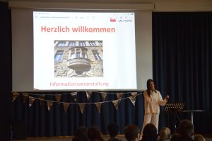 Um 11.00 Uhr findet ein Vortrag der Schulleitung in der Aula statt.