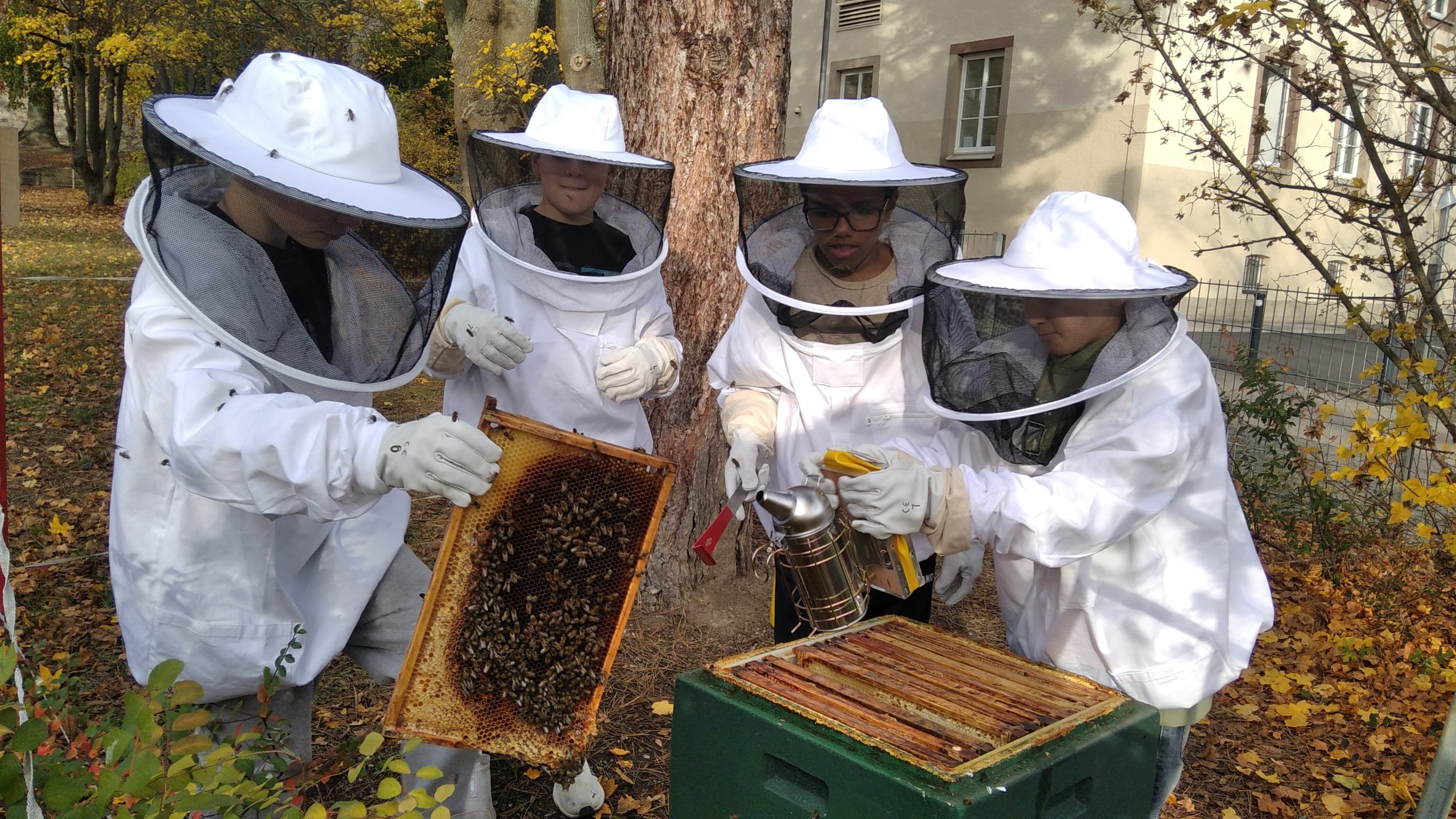 Bis dahin werden in der Imker-AG handwerkliche Tätigkeiten durchgeführt (Wachsverarbeitung, Mittelwände einlöten, Rähmen reparieren, Bau eines Insektenhotels) … und nicht zu vergessen: die notwendigen Theorieeinheiten vermittelt.